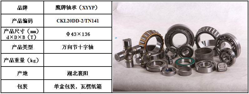 萬向(xiang)節十(shi)字軸(zhou)-CKL20DD-2/TN141-φ43×136-鷹牌(pai)軸承(cheng)