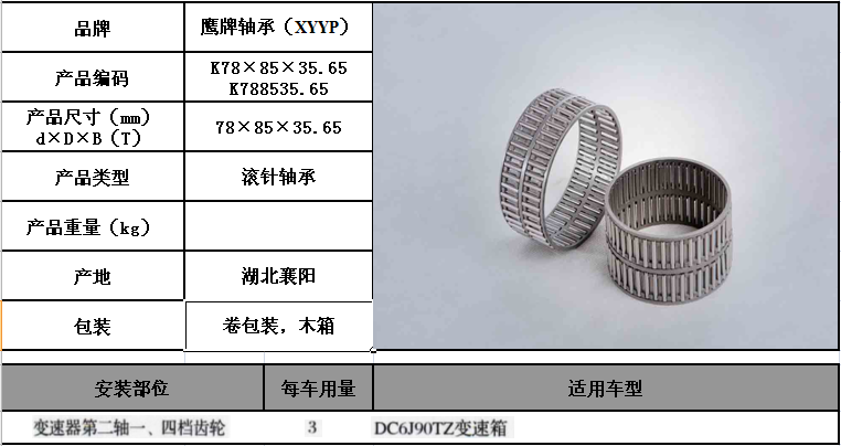 滾針(zhen)軸承(cheng)-K78×85×35.65-K788535.65-78×85×35.65-鷹牌(pai)軸承(cheng)